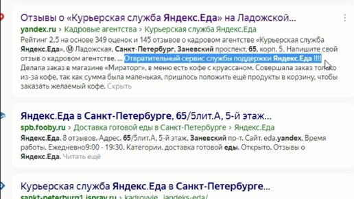 Яндекс еда удалил страницу курьерского центра из-за негативных отзывов.