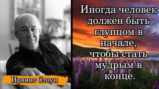 Ирвинг Стоун. Иногда человек должен быть глупцом в начале, чтобы стать мудрым в конце.