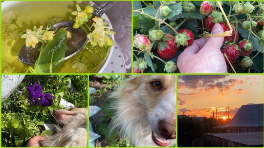 Влог. Салат с мокрицей. Липа для чая. Сбор клубники и жимолости.В день солнцестояния. 21 .6. 2023 г.