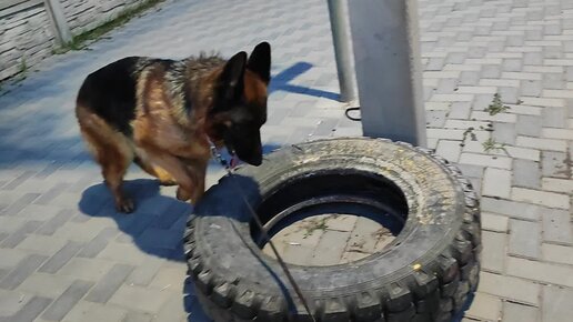Хедда, 7 лет. На вечерней прогулке позанимались на брошенной покрышке. Рядом много раздражителей - дорога, магазин, парковка.