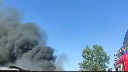 В Ростовской области загорелся склад с электротехникой и посудой.Площадь пожара в посёлке Янтарный - 2 тыс. кв. м.