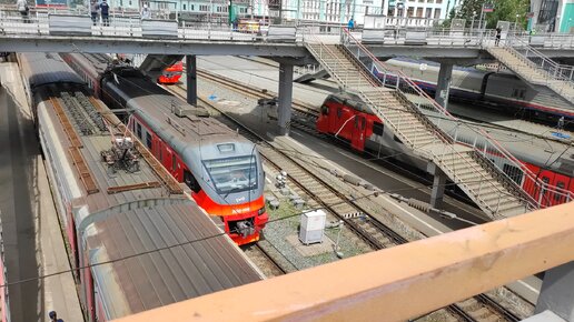 Электропоезд ЭП2Д-0093 отправляется со станции Новосибирск-Главный