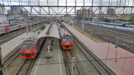 Электропоезд ЭД4М-1033/1034 прибывает на станцию Новосибирск-Главный