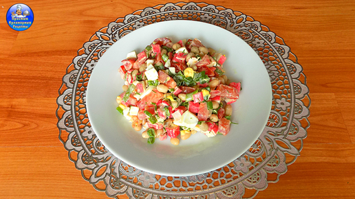 Простой салат с белой консервированной фасолью и крабовыми палочками