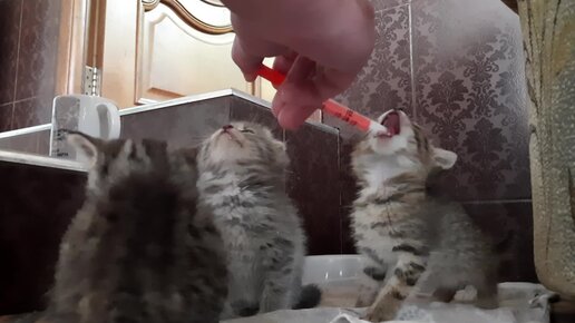 Кошка бросила котят, приходится кормить из пипетки, сами ещё очень плохо едят!