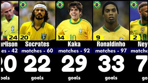 25 лучших бомбардиров национальной сборной Бразилии