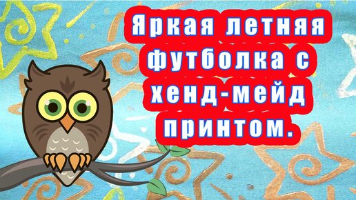 Яркая летняя футболка с хенд-мейд принтом.