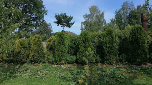 Обрезаю Девичий виноград (Parthenocissus) с забора за туями. Июнь 2023.