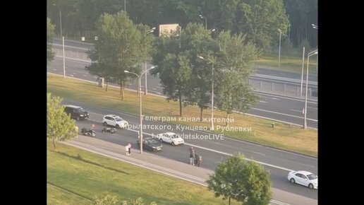 ДТП с участие мотоциклиста произошло на Рублевском шоссе в сторону области в Крылатском 🚨 Судя по видео все живы и целы