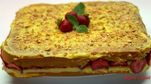 Торт Бисквитный с клубникой и заварным кремом Летний торт с НЕВЕРОЯТНЫМ ВКУСОМ!