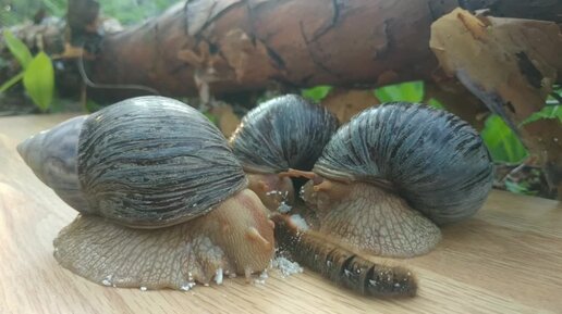 Кормлю Ахатинок в лесу. Реакция улитки на гусеницу