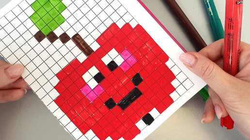 Как нарисовать яблоко легко по клеточкам. Рисунки для срисовки.