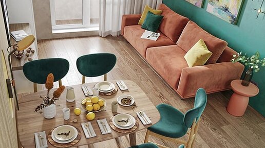 Интерьер, заслуживающий внимание. Живая и яркая квартира на 45м² с отличной организацией пространствам.