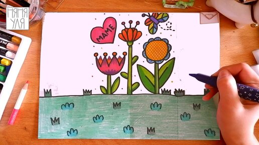 Как нарисовать ЦВЕТЫ маме поэтапно для детей | Радужные летние рисунки для срисовки | Няня Уля
