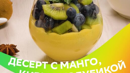 Десерт с манго, киви и голубикой