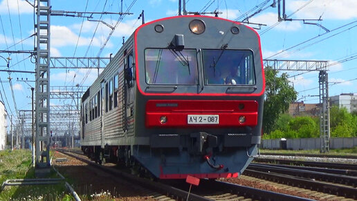 Автомотриса АЧ2-087 проследует станцию Железнодорожная