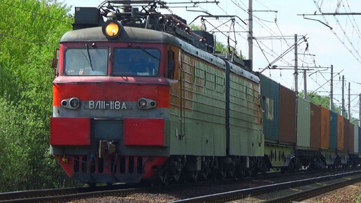 "На разгон!" Электровоз ВЛ11-118 с контейнерным грузовым поездом