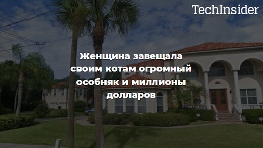ЖЕНЩИНА ЗАВЕЩАЛА СВОИМ КОТАМ ОГРОМНЫЙ ОСОБНЯК И МИЛЛИОНЫ ДОЛЛАРОВ