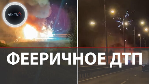 Фейерверк на трассе | Под Москвой загорелась фура с салютами