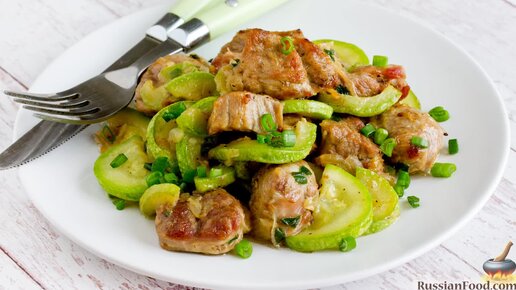Мясо получается мягким и вкусным, а кабачки - нежными и сочными. Свинина, тушенная с кабачками.