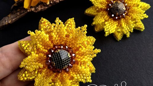 🌻 Как сделать брошь "Подсолнух" из бисера (мастер-класс). Видео
