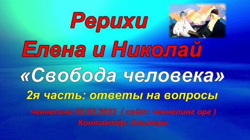 Ченнелинг Рерихи Елена и Николай «Свобода человека» 02.02.2023 2я часть: ответы на вопросы Свобода в любви к Богу, быть милосердным к человеку