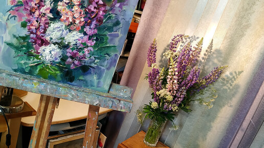 Как написать цветы маслом на холсте. Люпины 40х50 см.