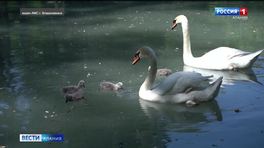 У семейной пары лебедей в Центральном парке Владикавказа вылупились четверо птенцов