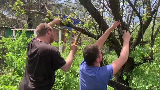 Пилим старые ветки на абрикосе( пилой и секатором)