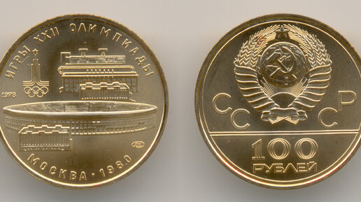 Нумизматика. Золотая монета. 2. Олимпиада-80 - 100 рублей 1978 - Стадион.