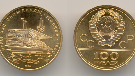 Нумизматика. Золотая монета. 3. Олимпиада-80 - 100 рублей 1978 - Гребной канал.