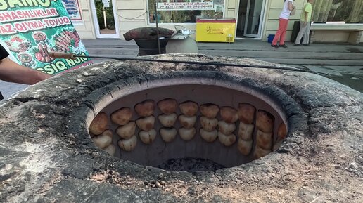 Приготовление самсы в тандыре. Узбекистан. Горный поселок Сиджак. Июнь 2023
