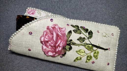 Завершаем вышивку розы и пошив очечника