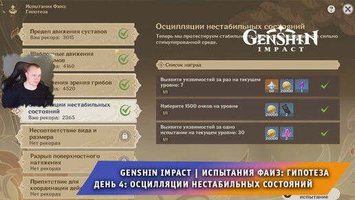 Геншин Импакт ➤ Событие ➤ Испытания Фаиз: Гипотеза ➤ День 4: Осцилляции нестабильных состояний ➤ Прохождение игры Genshin Impact