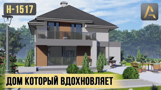 Вдохновляющий дом в современном стиле. Проект дома с гаражом, кабинетом, террасой и балконом