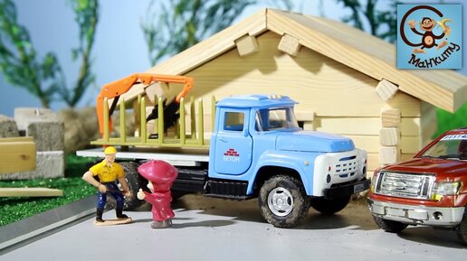 Мультик про машинки. Машинки строят мост для игрушек. Манкиту