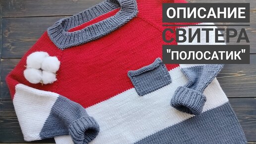 Вязаный свитер спицами в полоску | Реглан сверху | Краткое описание