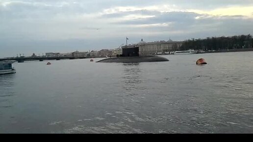 Подводная лодка в акватории Невы в Санкт-Петербурге.