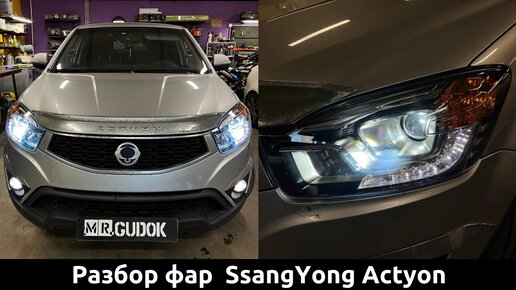 Разбор фар SsangYong Actyon, установка светодиодных линз MTF, восстановление стекол. До/ После, подробности и нюансы работы в видео