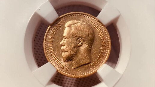 Монеты времени правления Николая II. Золотые монеты. 7 рублей 50 копеек 1897 г. (АГ) в слабе ННР MS62.