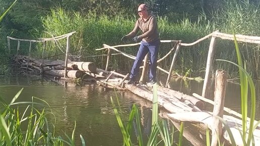 Велопрогулка с поисковым магнитом вдоль русла реки. Показываю интересные места и вылавливаю находки на деревянном переходе между старых сел