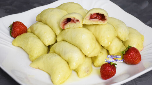 На кефире! Пышные вареники с клубникой на пару 🍓🥟 Бабушкин рецепт