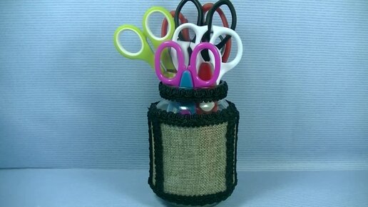 Декорирование стеклянной банки мешковиной и тесьмой .