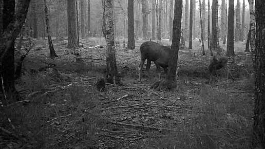 ЛОСИХА С ЛОСЕНКОМ УТРОМ