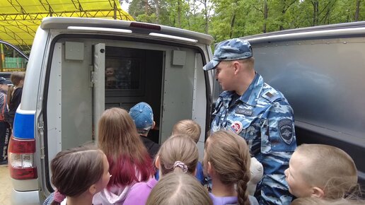 Сотрудники ОМВД провели в лагере ознакомительное мероприятие - с демонстрацией служебного автотранспорта ГИБДД и спецсредств