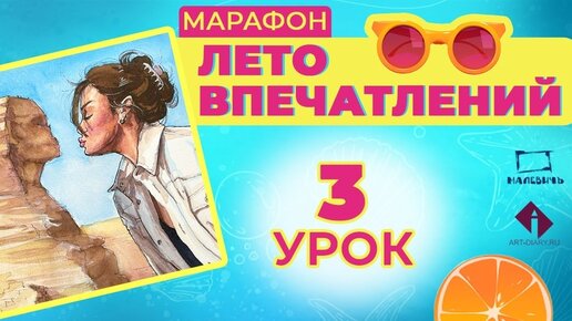 Рисуем акварельный скетч с девушкой и сфинксом! ЛЕТО ВПЕЧАТЛЕНИЙ 3 урок.