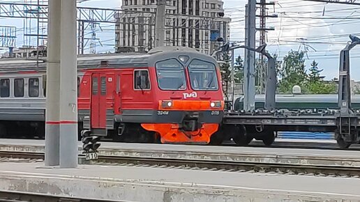 Электропоезд ЭД4М-0119/0105 прибывает на станцию Новосибирск-Главный