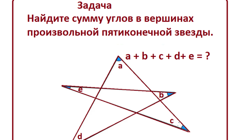 Найдите сумму углов в вершинах пятиконечной звезды. Развлекательная и познавательная Задача по геометрии