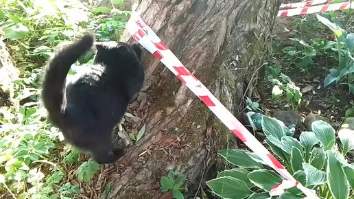 Отдыхаю с котами на даче. Большая хоста - наблюдательный пункт Сажика.
