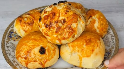 Булочка с изюмом,готовлю на полдник к чаю,очень нежные и воздушные, делюсь рецептом